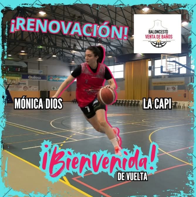 La primera pieza anunciada por Baloncesto Venta de Baños ha sido la de la continuidad de la capitana Mónica Dios que seguirá defendiendo los colores rojillos, destacando en su anuncio su liderazgo, compromiso y profesionalidad tanto dentro como fuera de la pista.