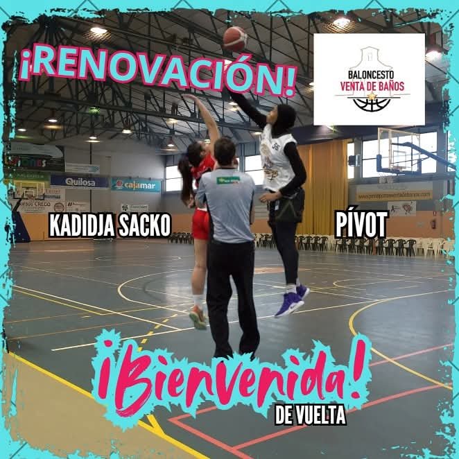 El capítulo de renovaciones continua con la pivot Kadidja Sacko. La joven promesa maliense en edad cadete, continuará formándose académica y deportivamente en Venta de Baños y además está convocada por la selección u-16 de Mali, y a pesar de su corta edad, tendrá una responsabilidad importante como referencia en el juego interior del equipo. Se suma en el juego interior a la ala pivot Belén, de la que habrá que esperar si las pruebas en su rodilla no reflejen ninguna lesión.