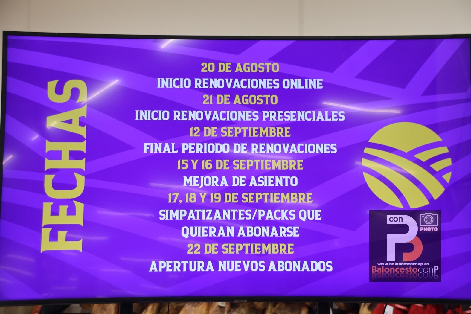 Gonzalo Ibañez como presidente del club y Raúl Villagrá como gerente de la entidad morada han sido los encargados de dar el pistoletazo de salida de la campaña de abonados; Gonzalo remarcaba que la Primera FEB es «una liga cada vez mejor situada en el panorama continental de la canasta, lo que añade mayor calidad al espectáculo que brinda y, a la vez, un mayor desafío para el club para ser lo más competitivo posible».
