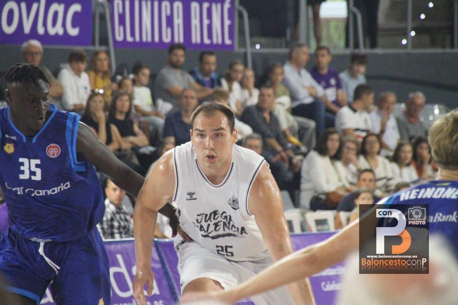 El partido comenzó con un alto ritmo de ambos equipos. Empezó anotando el cuadro canario, de la mano de Cameron Krutwig los morados comenzaban a dominar el marcador 9-6, pero el Gran Canaria B, liderado por un destacado Massamba Diop (#35), respondió rápidamente para mantener el marcador ajustado en los primeros compases (11-10). Sin embargo, el equipo palentino fue asentándose y comenzó a despegarse gracias a un espectacular mate de espaldas de Kamba (13-10) y un triple de Tobias Borg (16-10), quien también mostró una versión mejorada en este encuentro.