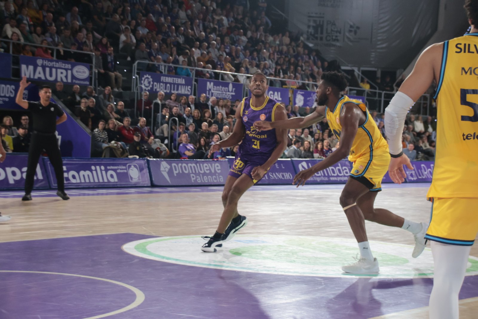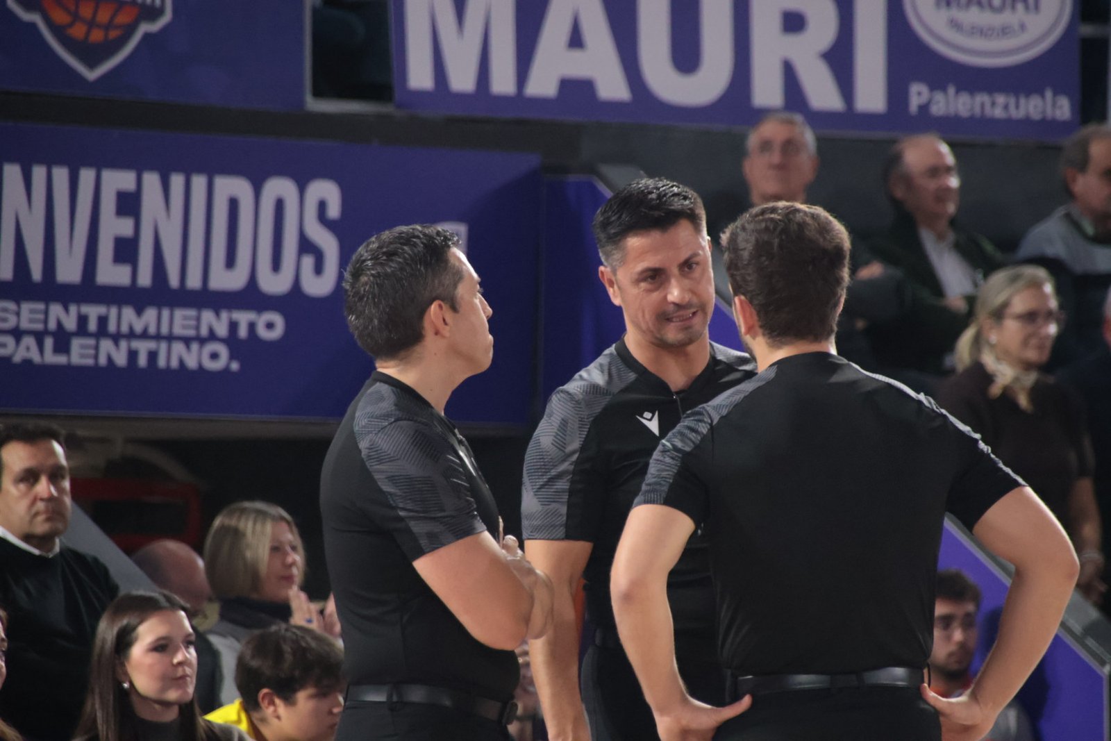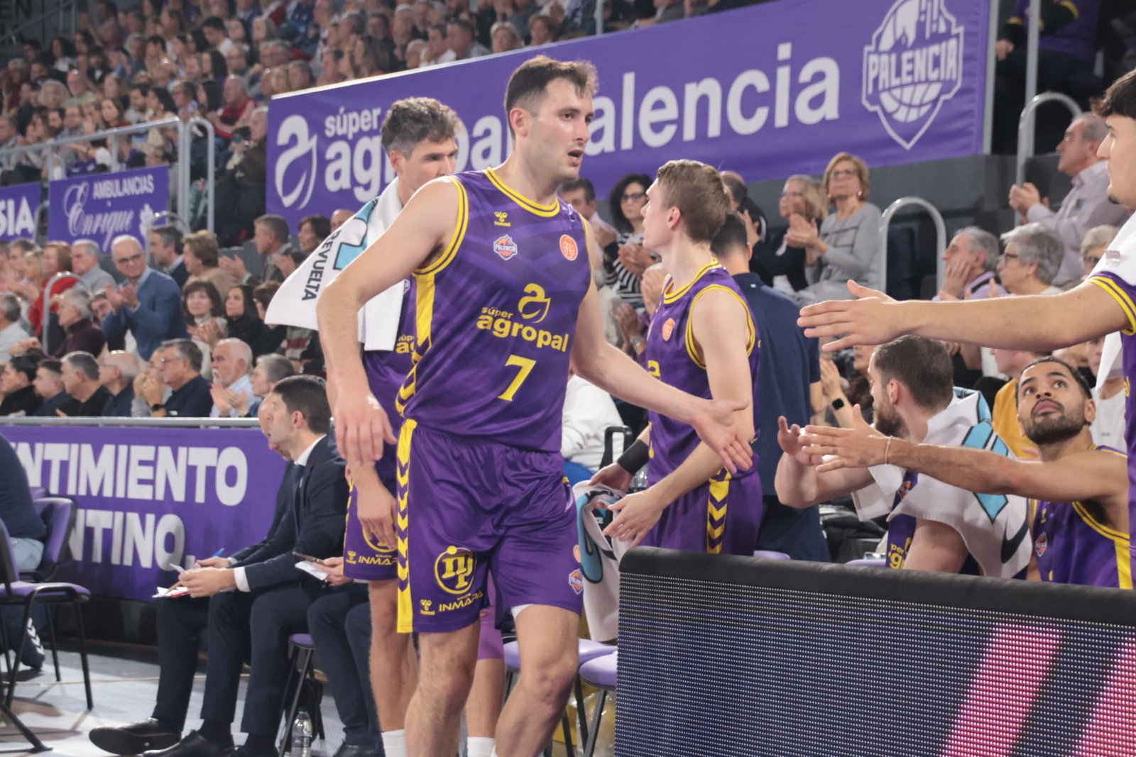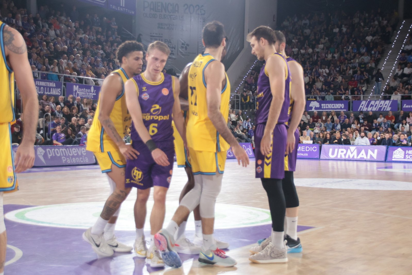 El partido comenzó con un ambiente especial: el pabellón lleno, el estreno de la nueva equipación morada, recibimiento caluroso a Vaulet y McGrew, ambos equipos posando con una pancarta en apoyo a la lucha contra la violencia de género  y un emotivo minuto de silencio por Antonio Ruiz Maeso secretario de la Delegación Palentina de Baloncesto y Árbitro de la Federación Regional.