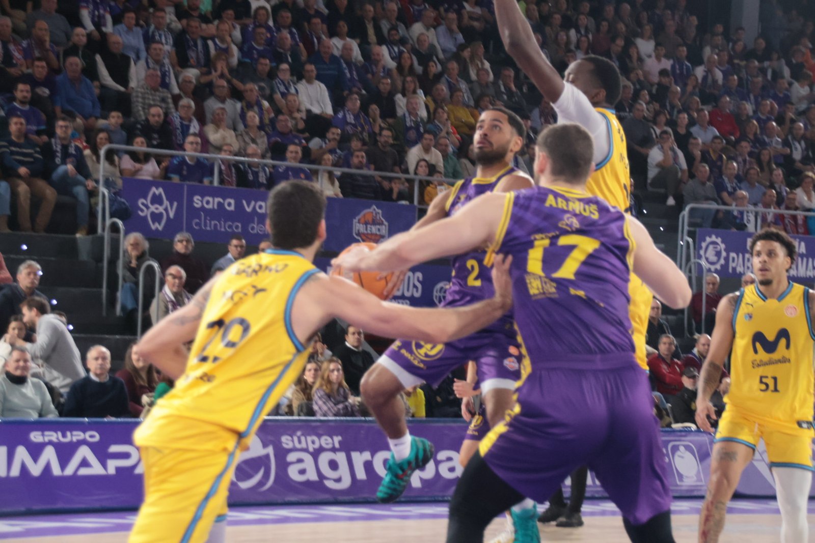 Los morados se escaparon con un parcial 10–0 que dejó aturdido al equipo de Toni Ten. El descanso llegó con 42–29 y la sensación clara de que el partido estaba decantándose de forma demoledora aunque el marcador no reflejaba por completo la superioridad morada. El recuerdo del partido ante HLA Alicante obligaba a estar expectantes.