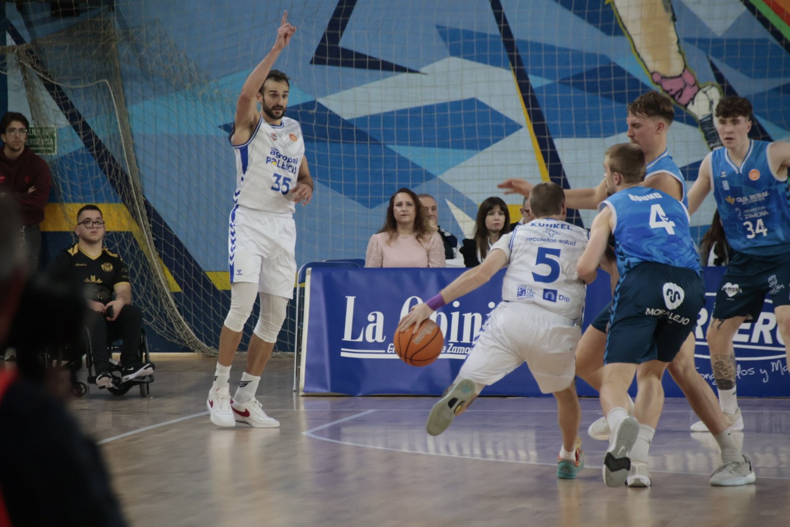 Comenzó Manu Rodríguez anotando la primera canasta del segundo cuarto, en lo que sería el preludio de su recital persona. Rogers respondió con un triple (26-20), ahí se rompió el partido. Súper Agropal Palencia subió líneas, ajustó en el rebote y desató un vendaval ofensivo que el Zamora no pudo frenar. El parcial de 10-42 antes del descanso fue un auténtico golpe sobre la mesa, con Manu Rodríguez como gran protagonista: 15 puntos sin fallo al descanso y una clase magistral de efectividad. A su alrededor, Kunkel, Vrankic y Jakovics castigaron desde el triple, sumando acierto exterior y control del ritmo.
