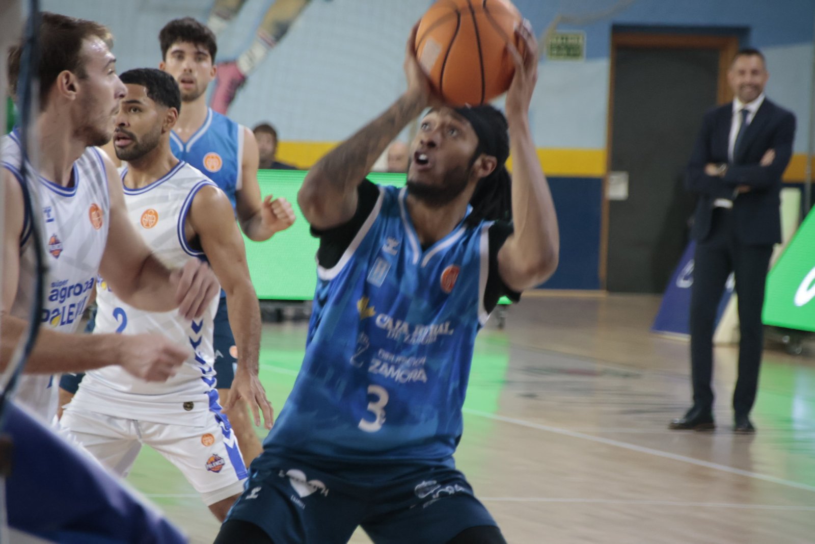 Comenzó Manu Rodríguez anotando la primera canasta del segundo cuarto, en lo que sería el preludio de su recital persona. Rogers respondió con un triple (26-20), ahí se rompió el partido. Súper Agropal Palencia subió líneas, ajustó en el rebote y desató un vendaval ofensivo que el Zamora no pudo frenar. El parcial de 10-42 antes del descanso fue un auténtico golpe sobre la mesa, con Manu Rodríguez como gran protagonista: 15 puntos sin fallo al descanso y una clase magistral de efectividad. A su alrededor, Kunkel, Vrankic y Jakovics castigaron desde el triple, sumando acierto exterior y control del ritmo.