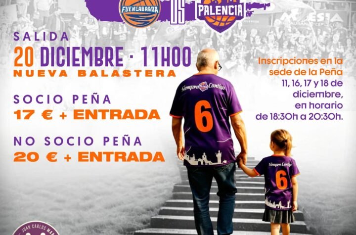 El próximo sábado 20 de Diciembre, la Peña BASKET MORAO organiza el desplazamiento a Fuenlabrada, donde el conjunto palentino se enfrentará al Flexicar...