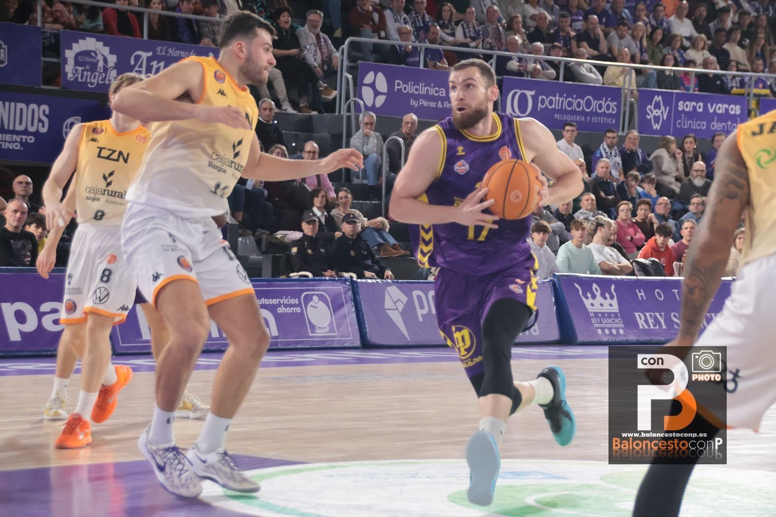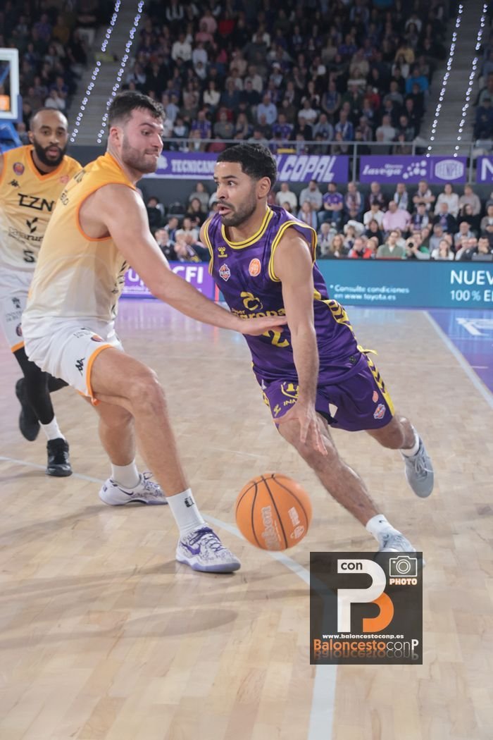 El inicio fue equilibrado. Vrankic abrió el marcador desde la pintura y el Tizona dejó claro que su plan pasaba por el tiro exterior (anotando sus 15 primeros puntos desde 6,75), con Alonso y Parrado manteniendo a los burgaleses en partido. Los morados, más eficaces al contraataque que desde el triple, cerraron el primer cuarto con una ligera ventaja (25-23) tras un intercambio constante de golpes.